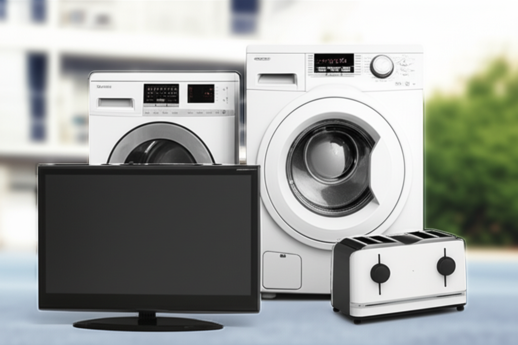- 소형 가전: 전자레인지, 청소기, 선풍기, 가습기, 밥솥, 전기밥솥, 다리미, 토스터, 믹서기, 드라이기, 고데기, 전기포트, 컴퓨터, 모니터, 프린터, 오디오, 비디오, 휴대폰 등