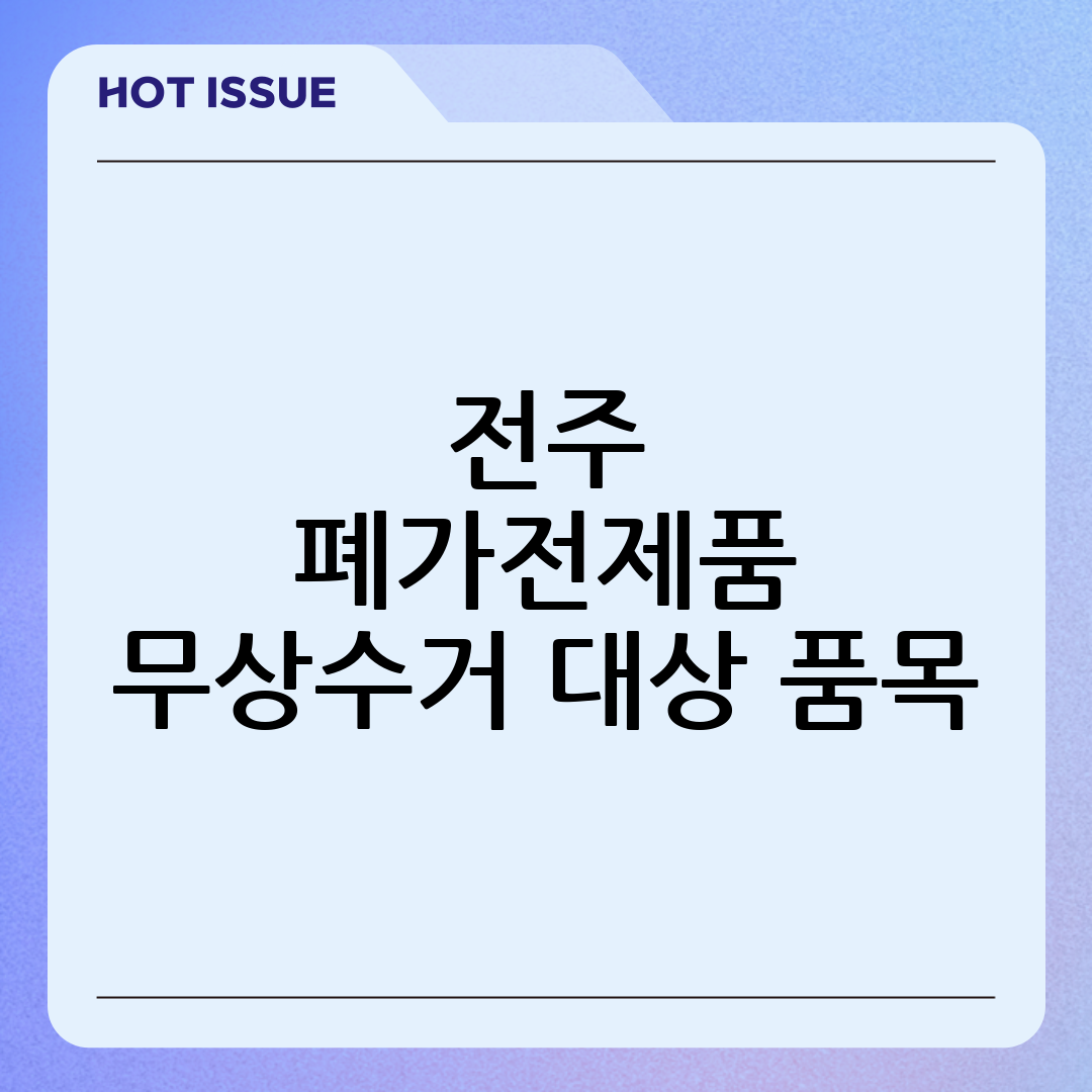 Q10: 폐가전제품 수거 관련 문의는 어디에 해야 하나요? A10: 폐가전제품 수거 관련 문의는 전주시청 홈페이지 또는 각 동 주민센터에 문의하면 자세한 내용을 확인할 수 있습니다.